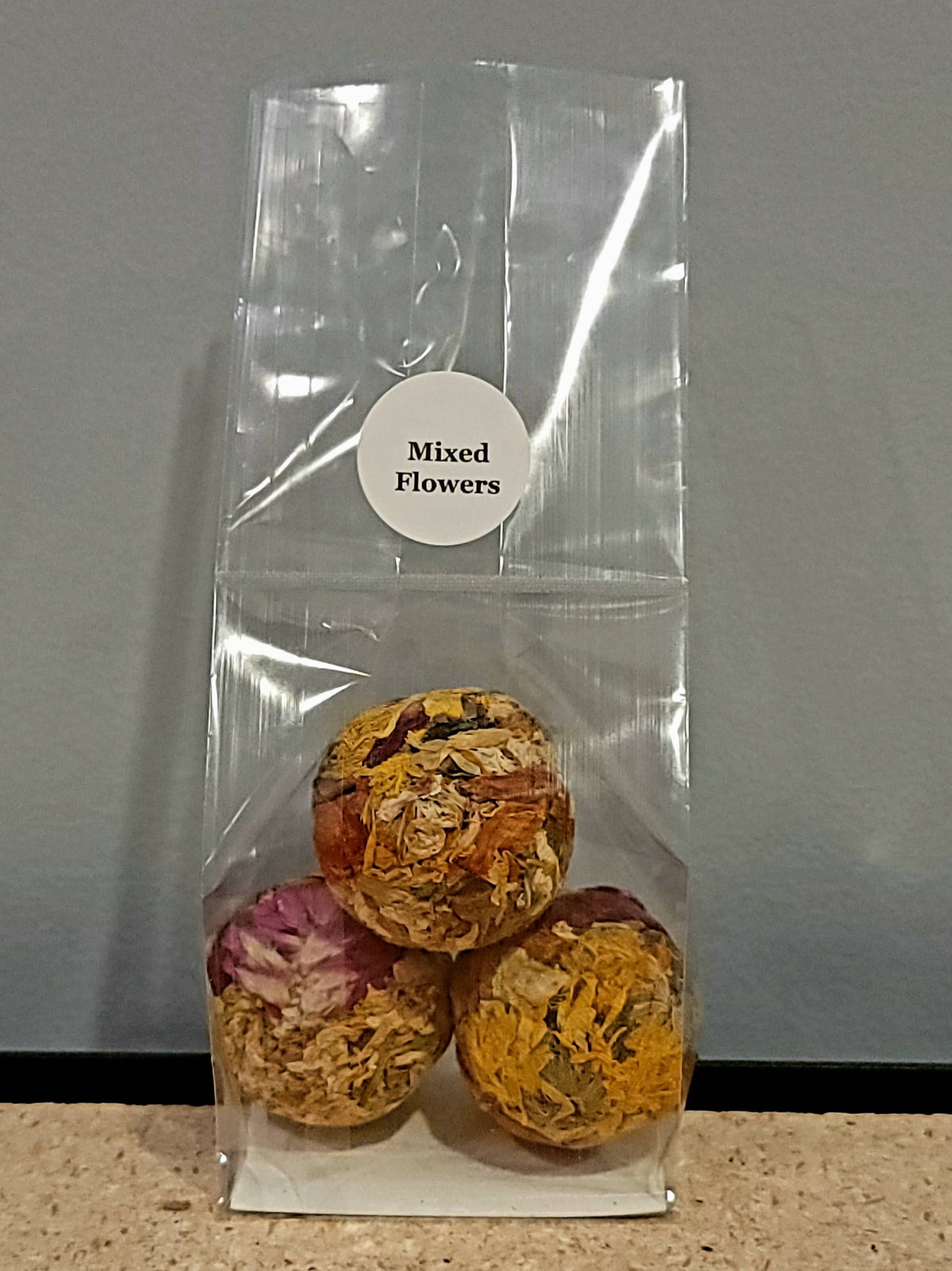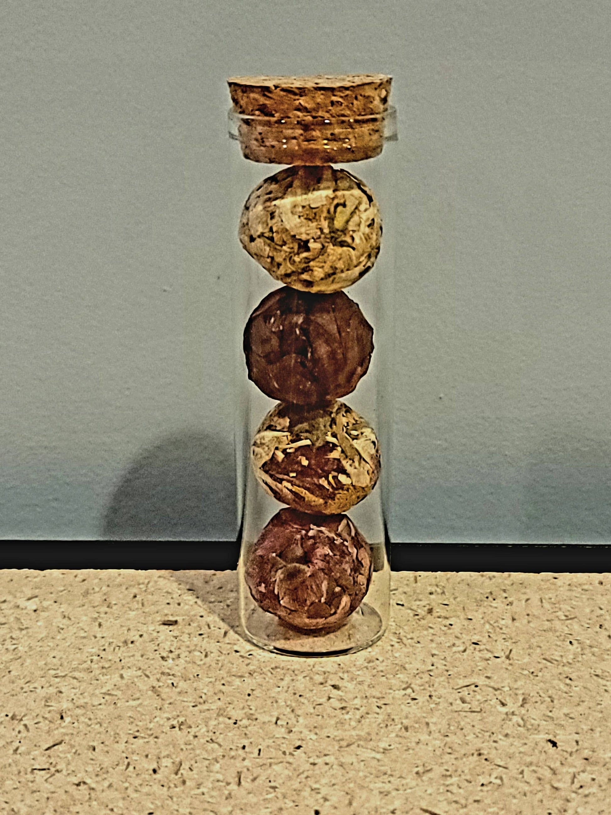 MINI Herbal Tea Balls, 3-Pack or Assortment: Assortment in glass test tube(4 Balls-Jasmine/Hibiscus/Rose/Mixed Flowers)